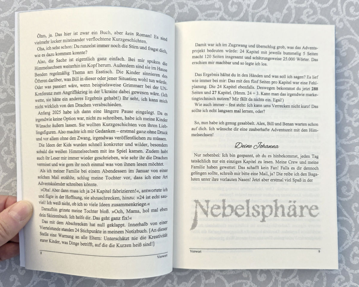 Ich glaube, ich habe noch nie ein so schönes Buch produzieren lassen. 😍 Ach, die Taschenbücher der privaten Edition von den magischen Adventsgeschichten sind wirklich echte Schmuckstücke geworden. Da ist es echt schade, dass diese Sonderausgabe streng limitiert ist. Aber was soll frau tun, wenn ihr der Lager-Platz ausgeht? Egal, darauf kannst du dich freuen: